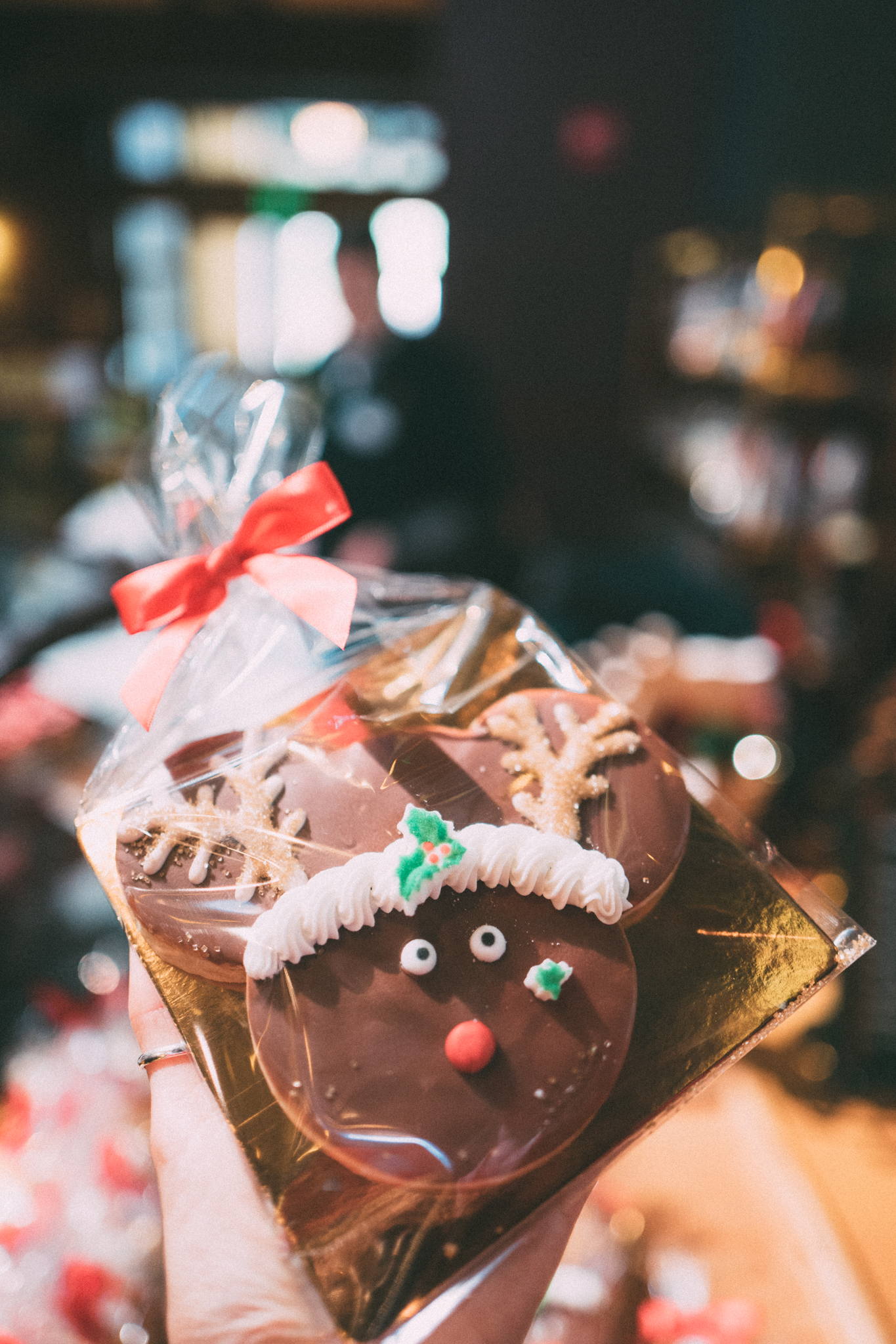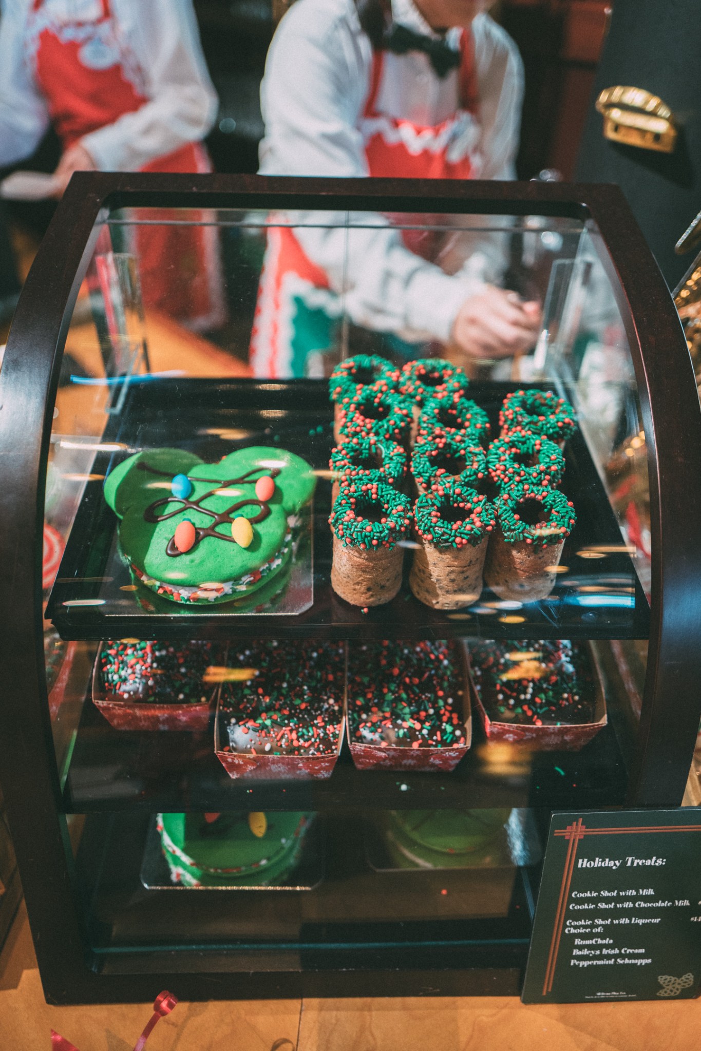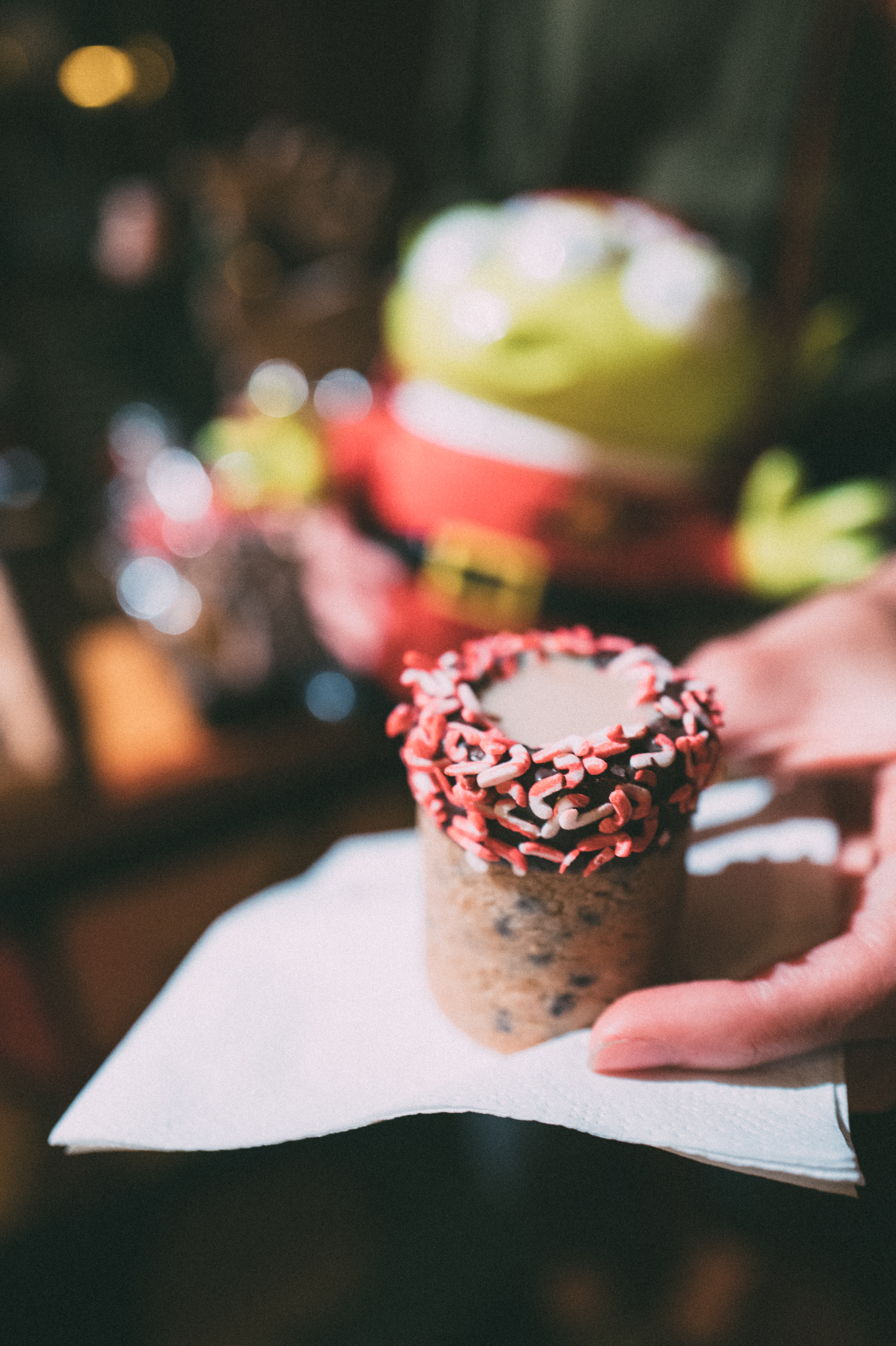 And, of course, one of my favorite seasonal treats is the rum-spiked hot chocolate that they sell in the lobby of the Grand Californian Hotel. TBH, pretty much everything the Grand does is unparalleled. In addition to the rum hot chocolate, they took it up a notch this year by offering chocolate chip cookie shot-holders that you could fill with milk or your favorite liquor.