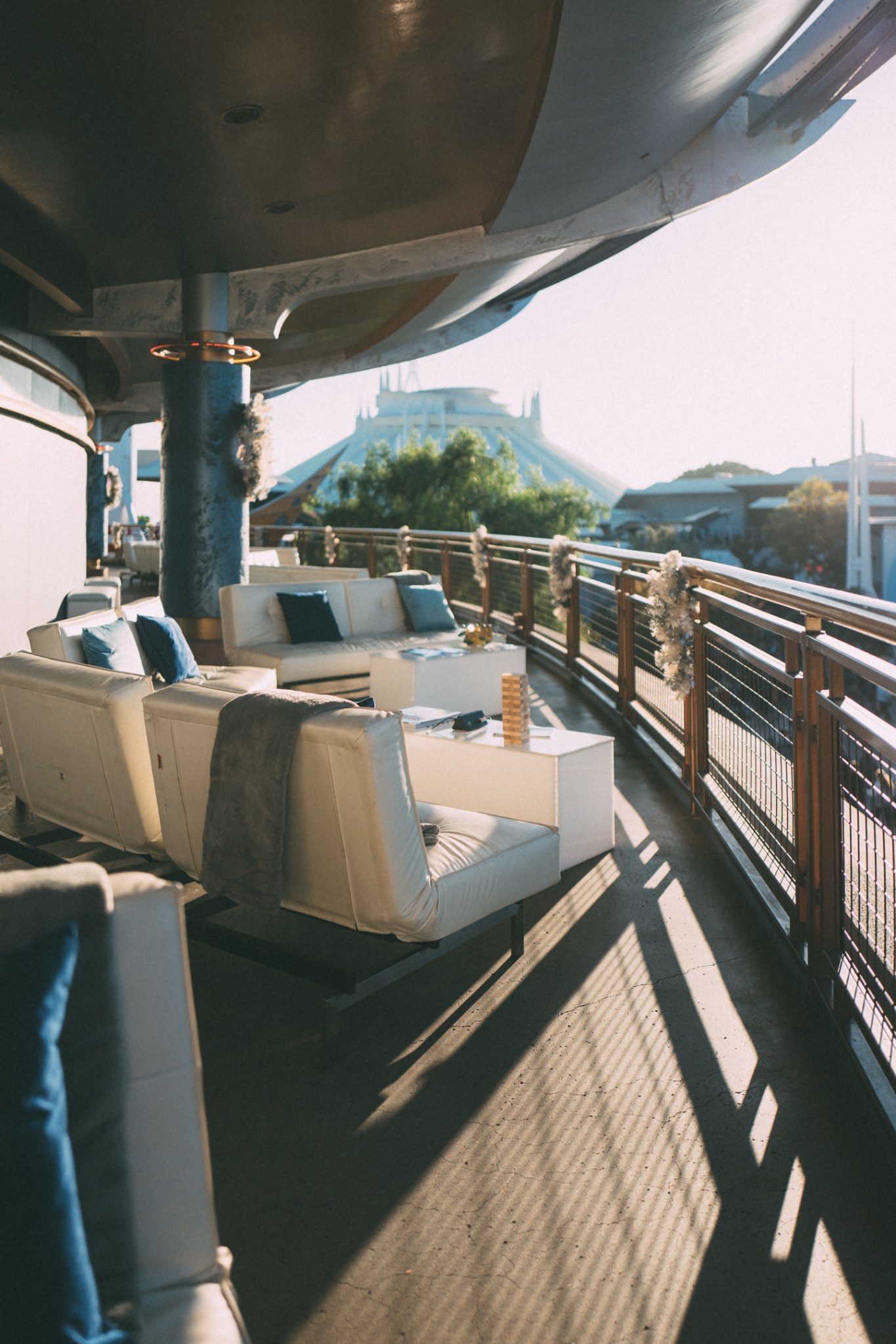 Since our last Plaid experience, they’ve added a nifty lounge area in Tomorrowland for guests on VIP Tours. The space is outfitted with couches, chargers, books, games, coloring stations, plus a table filled with complimentary treats (everything from snacks and sunscreen to scarves and Mickey ears!)