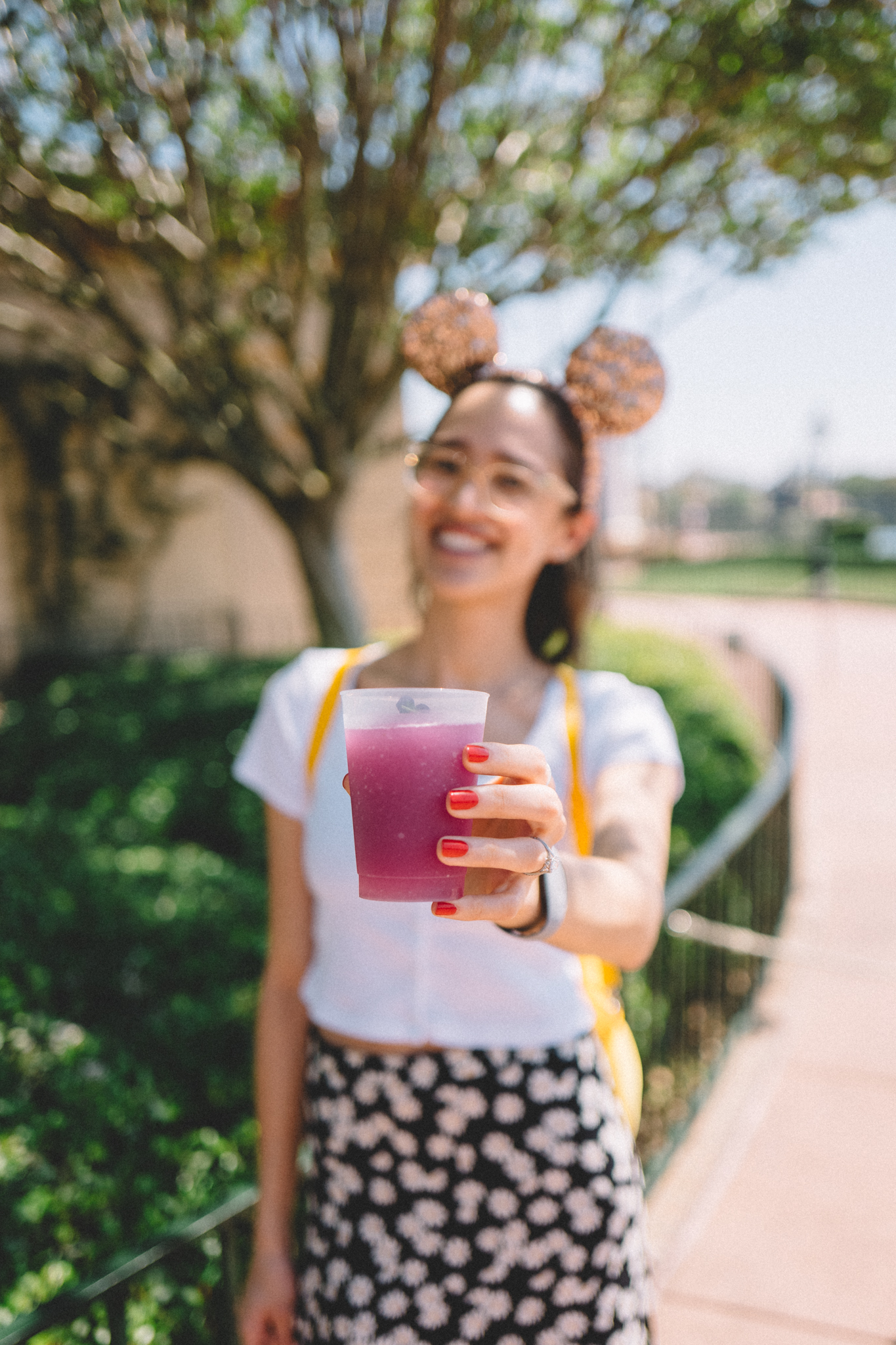 That said, we absolutely loved what we did try: the legendary frozen Violet Lemonade and a rum-spiked Dole Whip (made us feel like we were back in Hawaii, tear!) from the Pineapple Promenade stand, a La Vie en Rose cocktail slushy from France, and FRUSHI from Japan (my personal fav).