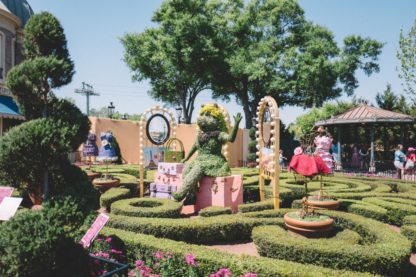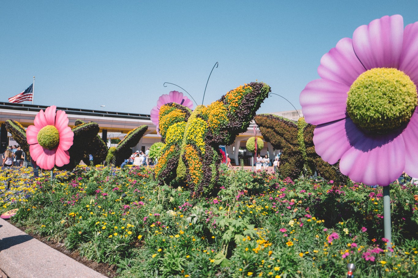 On our last visit to Walt Disney World, Epcot’s International Food and Wine festival was in full swing. On this go-around we had a brand new (to us) festival to explore: FLOWER AND GARDEN. This was our first time visiting Epcot during Flower and Garden festival, and we were soooo excited to see all the topiaries and EAT ALL THE THINGS.