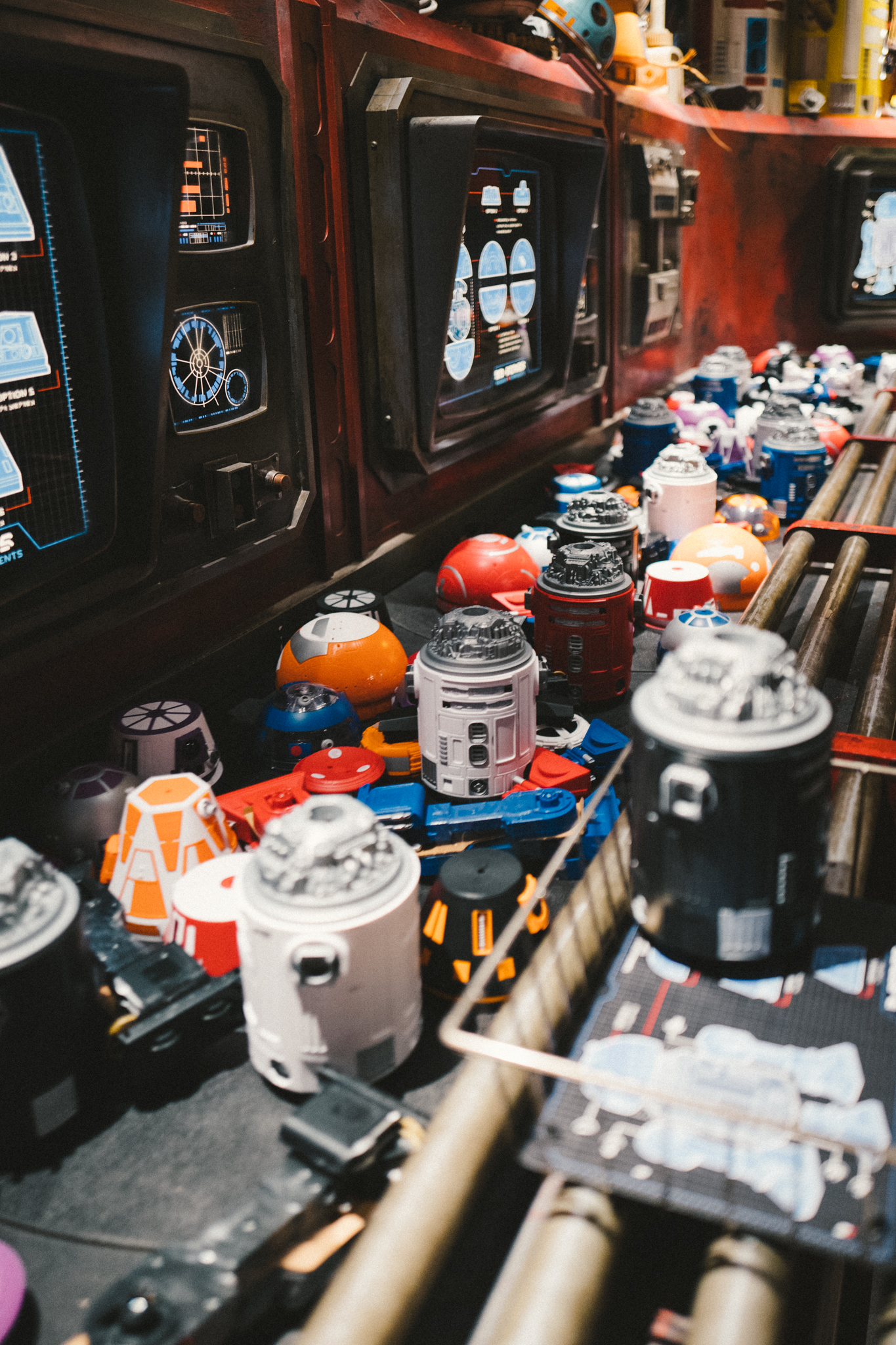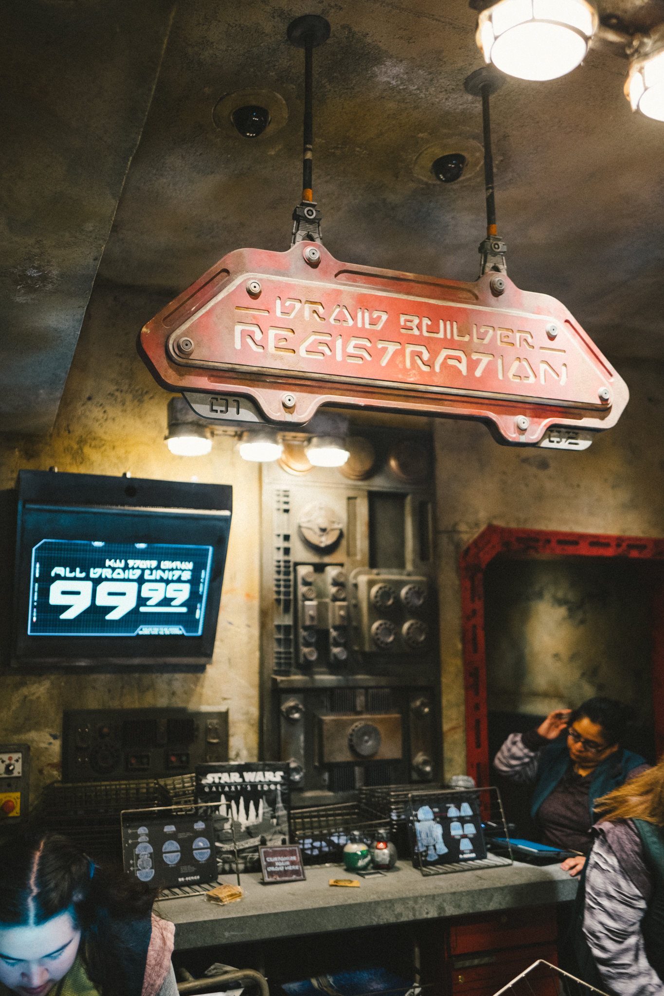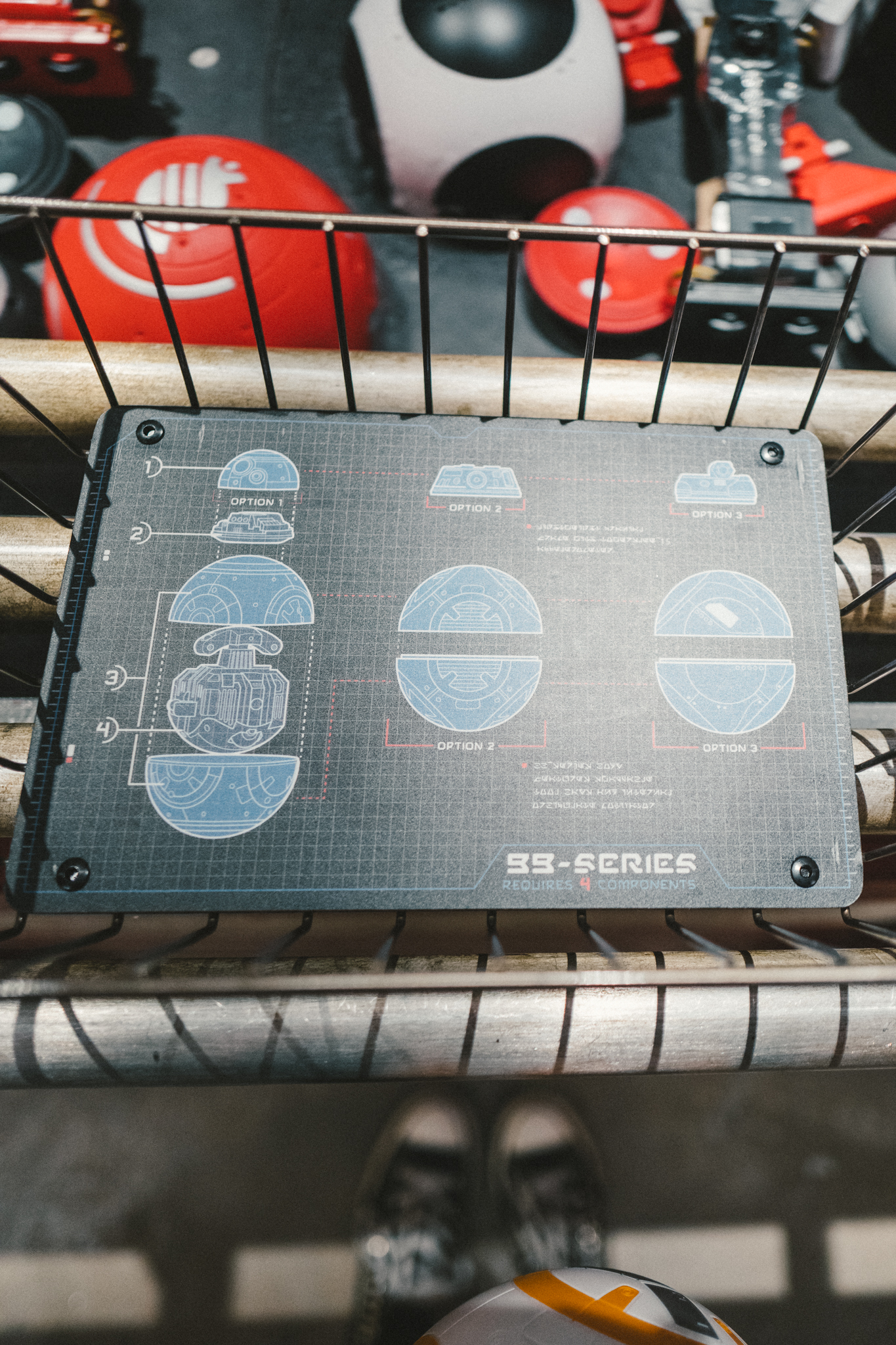 - After paying, builders get a basket to take to the conveyer belt full of Droid parts