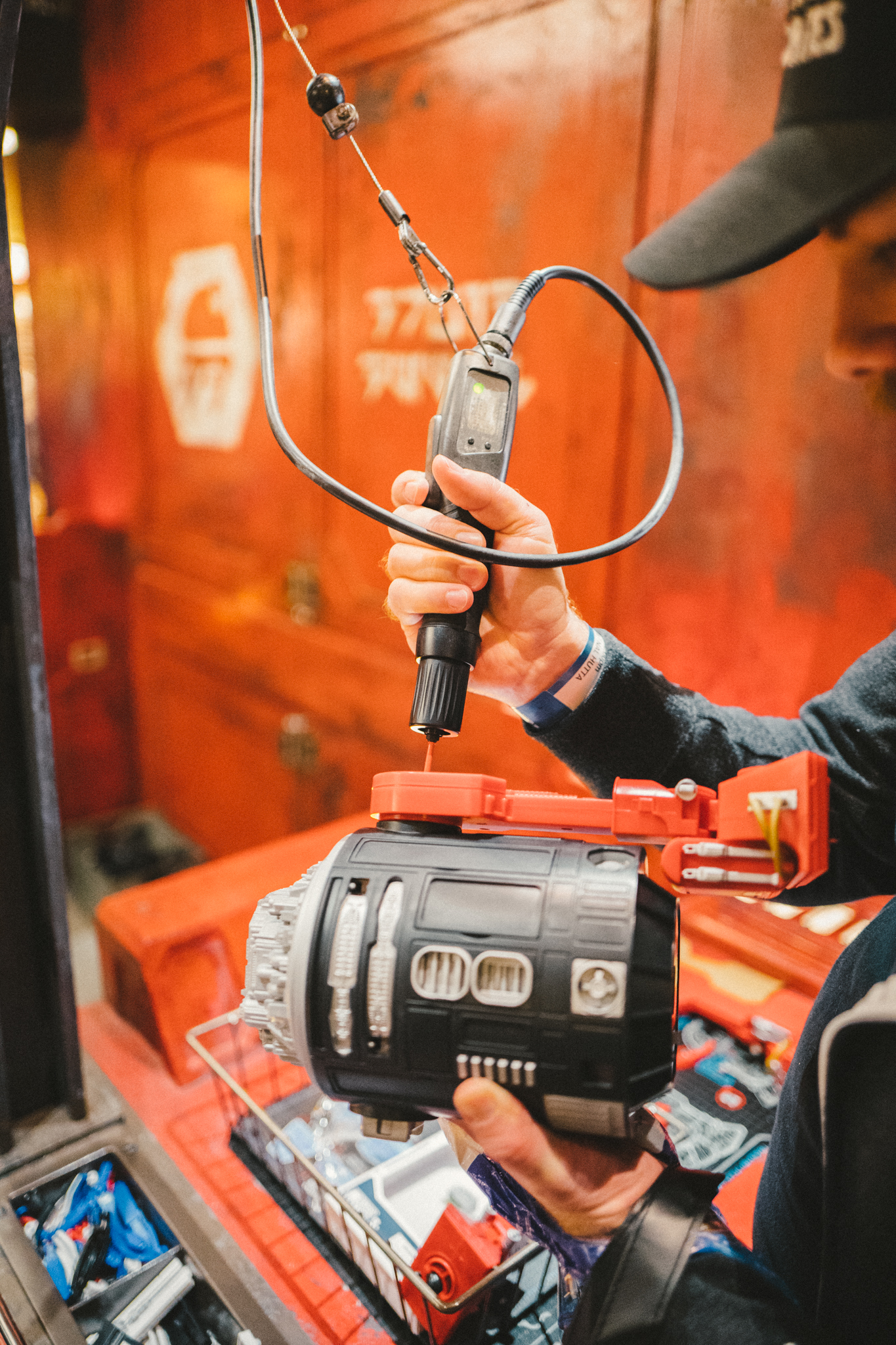 - Once the Droid is assembled, it’s “activated” — which includes pairing it with a remote, and a nifty light-up sequence